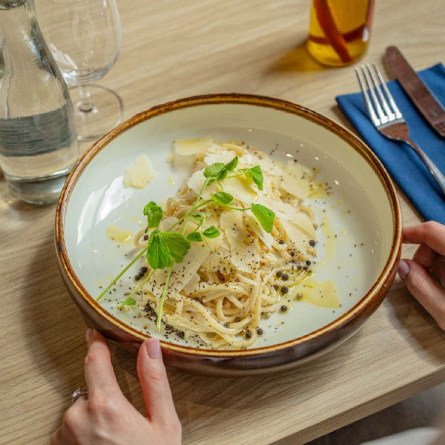 Restauracja Vivere to nowoczesne miejsce, które zachwyca nie tylko swoim wystrojem, ale przede wszystkim wyśmienitą kuchnią. Specjalizujemy się w daniach, które zaspokoją nawet najbardziej wyrafinowane podniebienia. Naszą specjalnością są pizzę oraz makarony typowo włoskie. Posiadamy również menu dla dzieci.