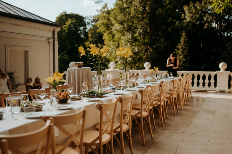 Dla gości chcących zorganizować mniejsze uroczystości, do 50 osób proponujemy również przestrzeń na tarasie z pięknym widokiem na Park.